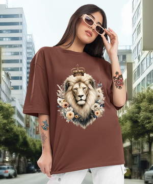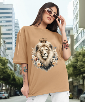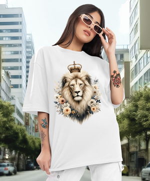 Camiseta Oversized Leão e Flores EF